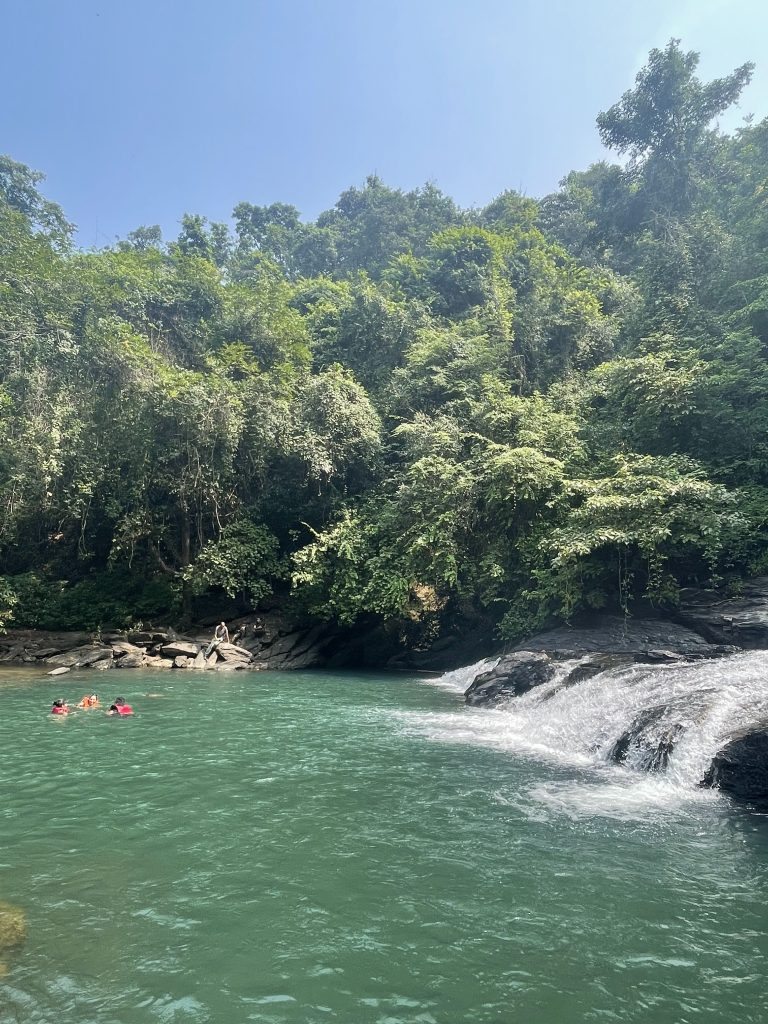 A short brisk walk through a thick forest, a quick descent, and this large rock pool with a waterfall emerges !