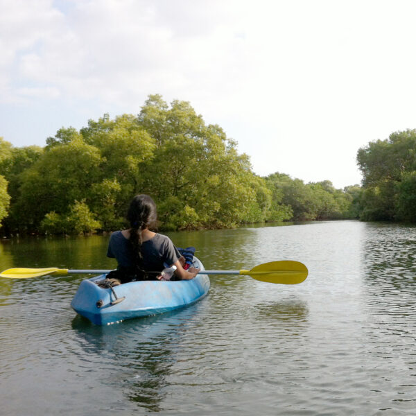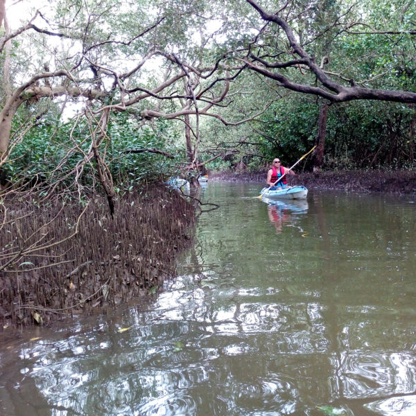 Backwaters Mangrove Kayaking must be done around the high tide. The time of the high tide changes everyday. On some days – when the high tide is too early in the morning or too late in the evening, Backwaters Mangrove Kayaking is not possible. Please contact us directly to know the best possible time you can kayak on your chosen date.
